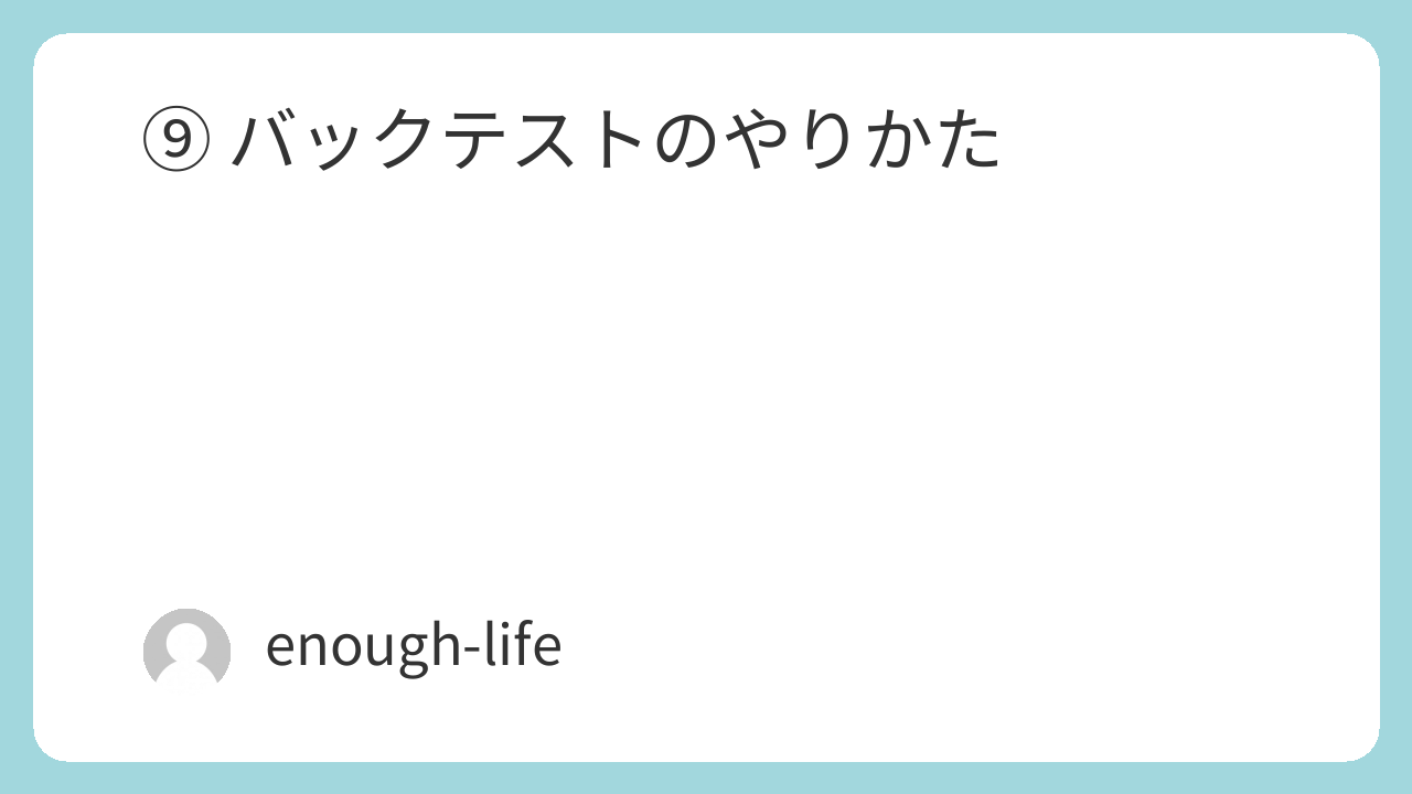 ⑨ バックテストのやりかた 2026.01.14 このページは、会員専用コンテンツとなっています。 最初から順に読むことで 理解しやすい構成になっています。 すでに登録されている方はログインしてください。 まだの方は、こちらから会員登録(無料)ができます。
