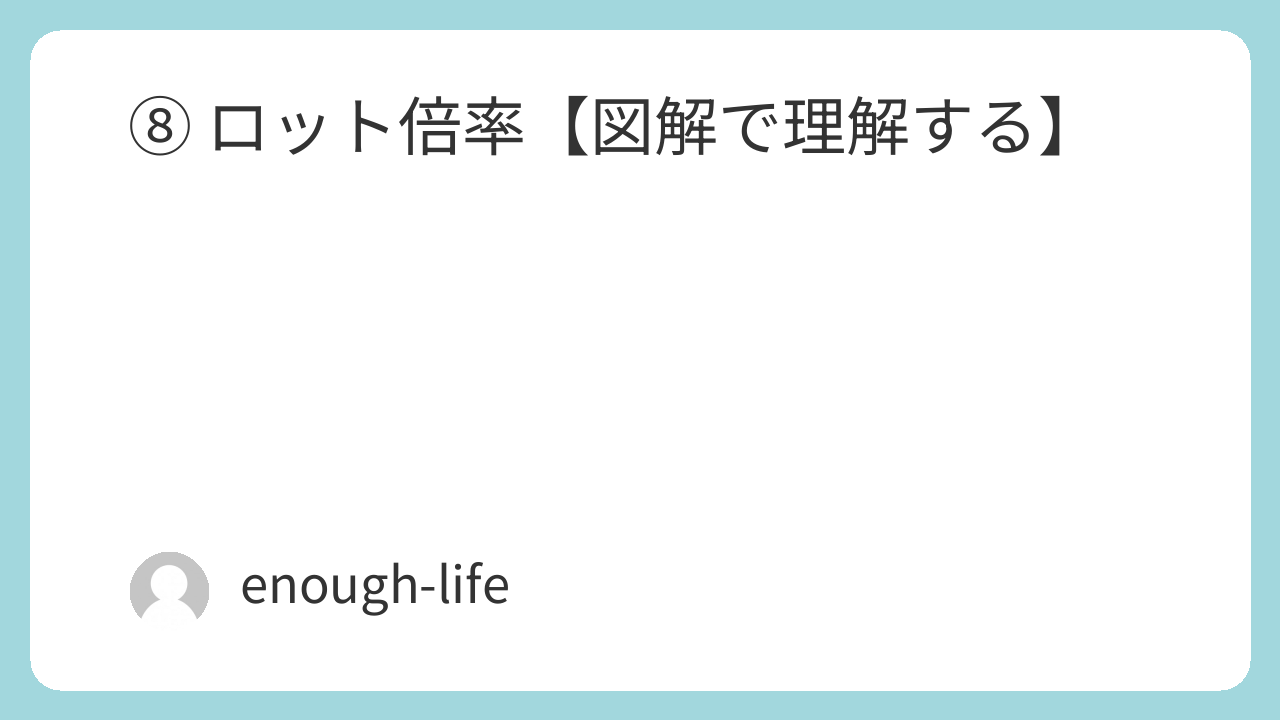 ⑧ ロット倍率【図解で理解する】 2026.01.162026.01.18 このページは、会員専用コンテンツとなっています。 最初から順に読むことで 理解しやすい構成になっています。 すでに登録されている方はログインしてください。 まだの方は、こちらから会員登録(無料)ができます。