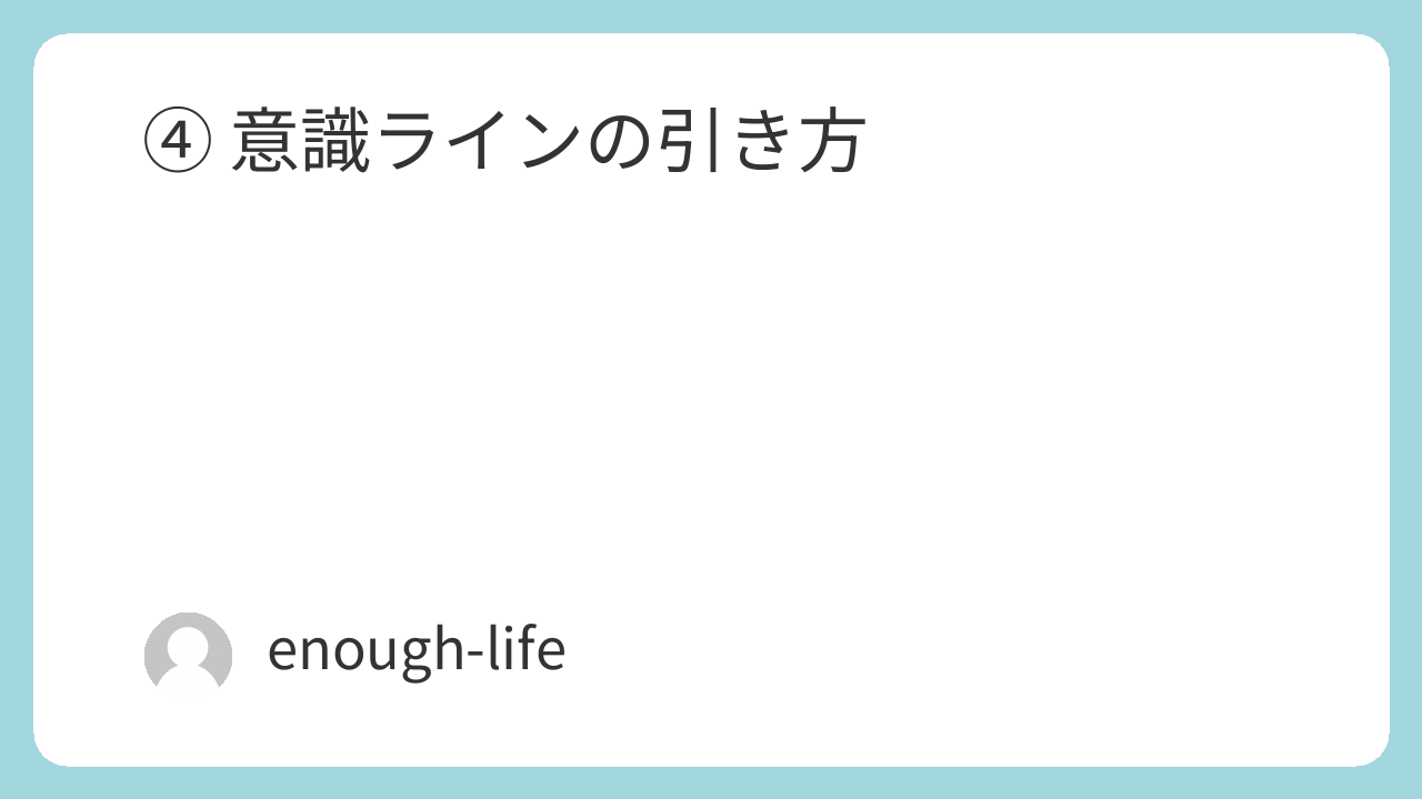 ④ 意識ラインの引き方 2026.01.112026.01.14 このページは、会員専用コンテンツとなっています。 最初から順に読むことで 理解しやすい構成になっています。 すでに登録されている方はログインしてください。 まだの方は、こちらから会員登録(無料)ができます。