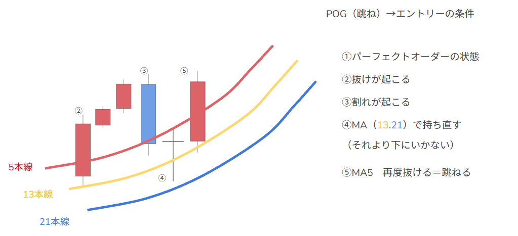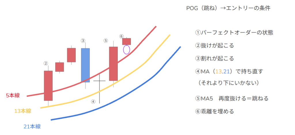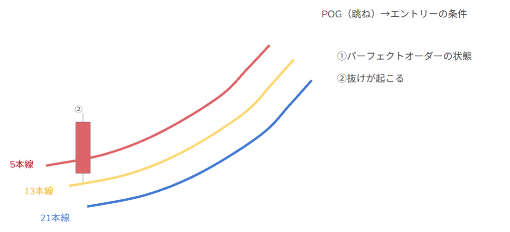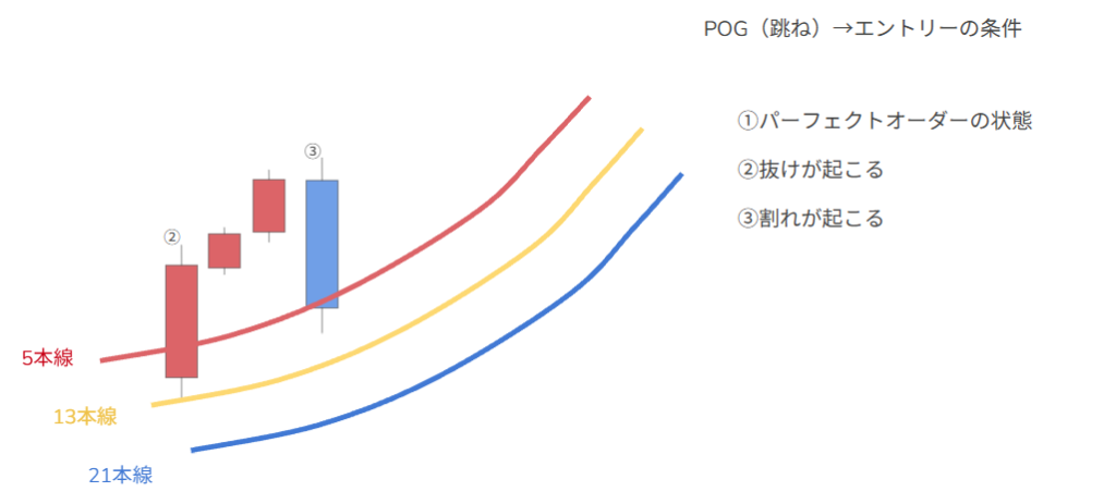 ※勢いがあるときに反対方向のローソク足がMAに重なることを「割れ」といいます。