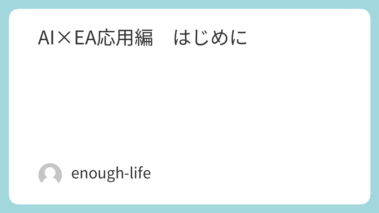 AI×EA応用編 はじめに 2026.01.14 このページは、会員専用コンテンツとなっています。 最初から順に読むことで 理解しやすい構成になっています。 すでに登録されている方はログインしてください。 まだの方は、こちらから会員登録(無料)ができます。